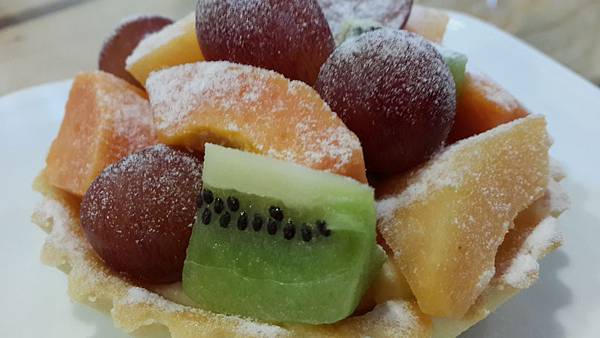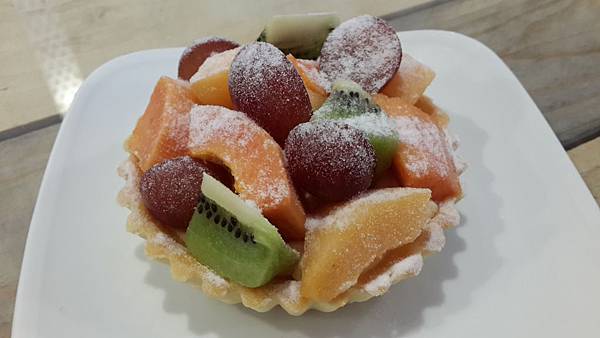 塔皮的部份還蠻扎實的,上面的水果也很新鮮,水果和塔皮中間夾的應該是卡仕達醬,吃起來不會很甜膩,搭配上店家特製的塔皮和新鮮水果,吃起來還蠻爽口的。