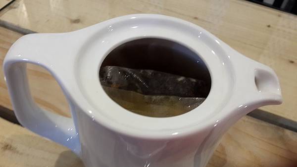 稍微打開壺蓋看了一下,是用茶包沖泡的,不過看起來跟一般市面上的茶包不太一樣