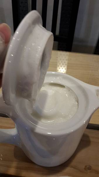 打開壺蓋看到的是一層的鮮奶泡,還有聞到一股鮮奶的味道。