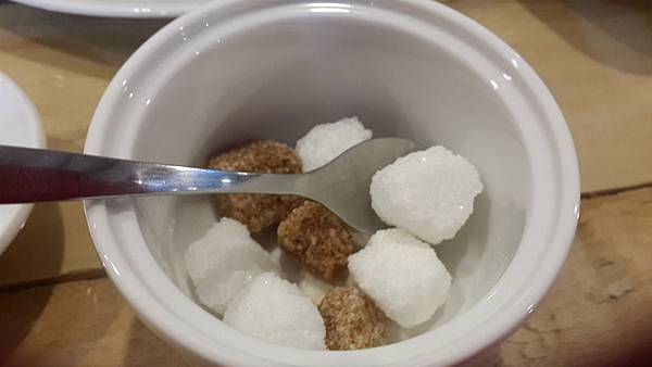 飲料緊接著也上桌了,先上桌的是我點的保加利亞玫瑰花茶,因為是熱的,所以可以自己填加糖的甜度。